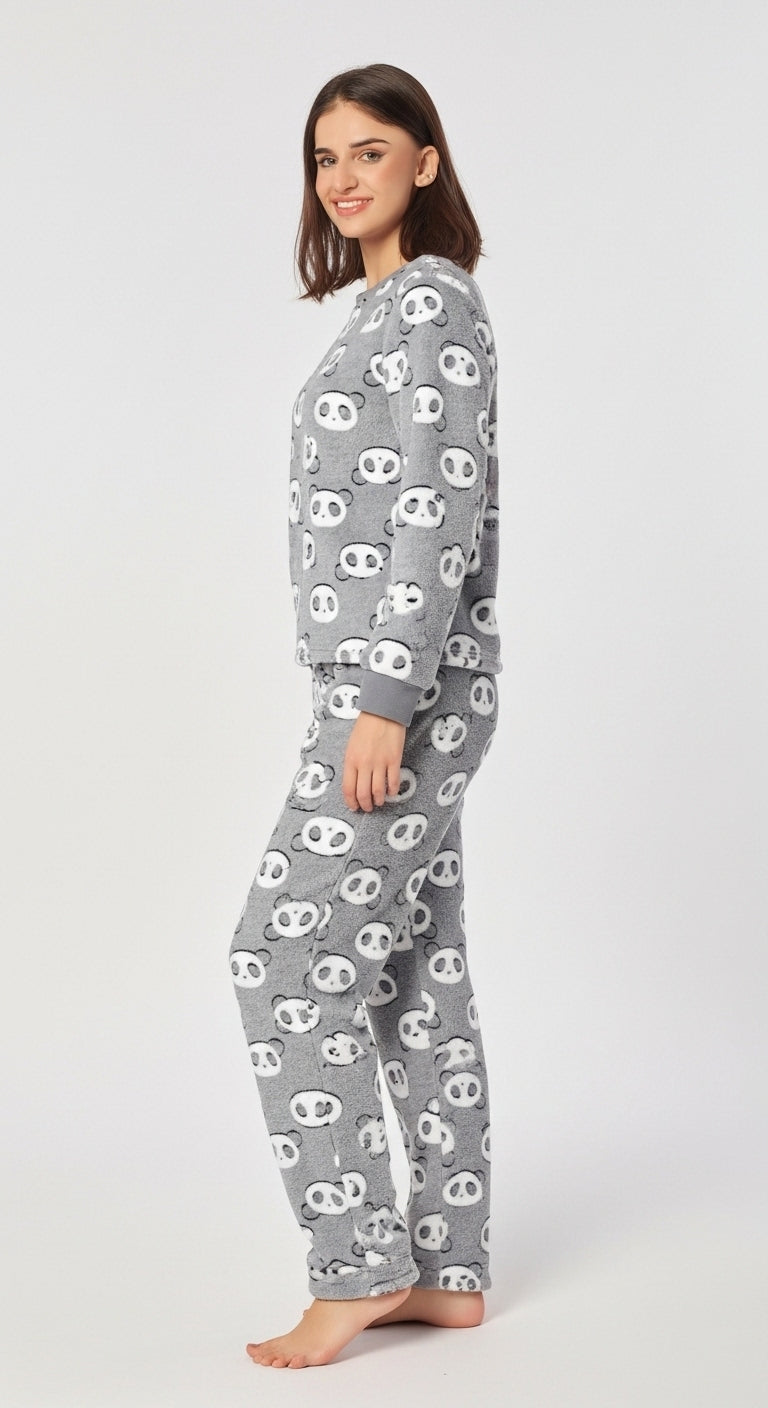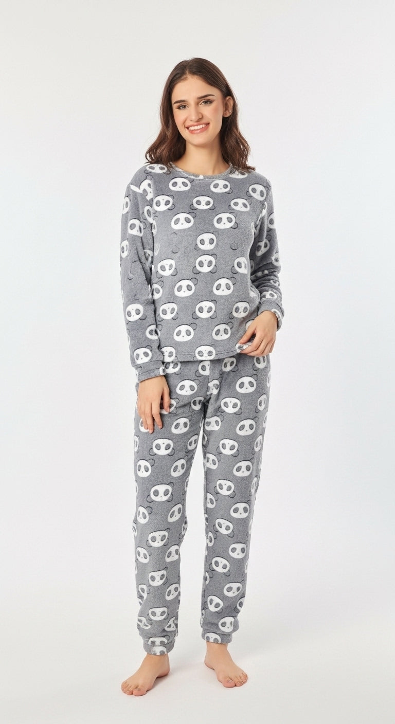 Pandy Cosy Pajama Suit is designed to keep you warm and stylish through chilly days. With its ultra-soft fabric and adorable panda pattern, it brings a playful vibe to your loungewear collection. The relaxed fit ensures all-day comfort while giving you a snug and cozy feel, perfect for winter nights at home.
