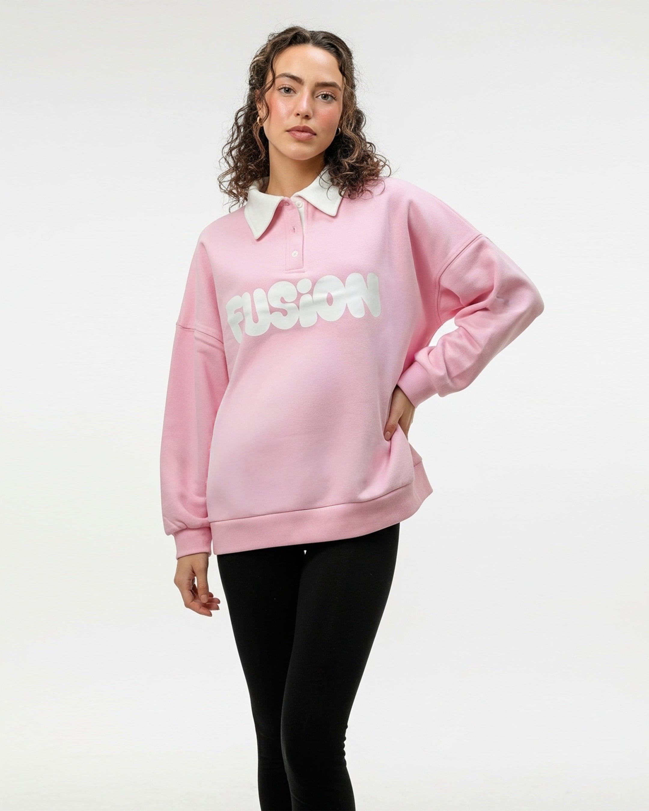 Fleece Polo Style Sweatshirt - FUSION - Pink